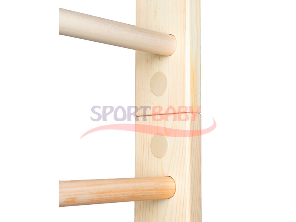 Wall bars Rainbow 3-220/240 is a classic tool for exercises and training of all age groups. This ladder may be used for gymnastics, strength training, fitness, bodybuilding, physical therapy, scoliosis treatment, and to improve range of motion by beginners and professionals alike. With its aesthetic craftsmanship and compact design, this ladder may be installed in homes, apartments, gyms, schools, clinics, and hospitals. Wall bars Rainbow 3-220/240 is also characterized by its reliability and ease of installation. In other words, this ladder is an all around pleasure to use! Furthermore, Rainbow 3-220/240 uses a proven design that has undergone strict control, making it the safest option when it comes to Swedish Ladders. Made of natural hardwoods pine and beech, grown in ecologically clean areas. The finished product is coated with a certified varnish that is odorless and protects from moisture and wear, helping maintain an excellent appearance and adding to longevity.